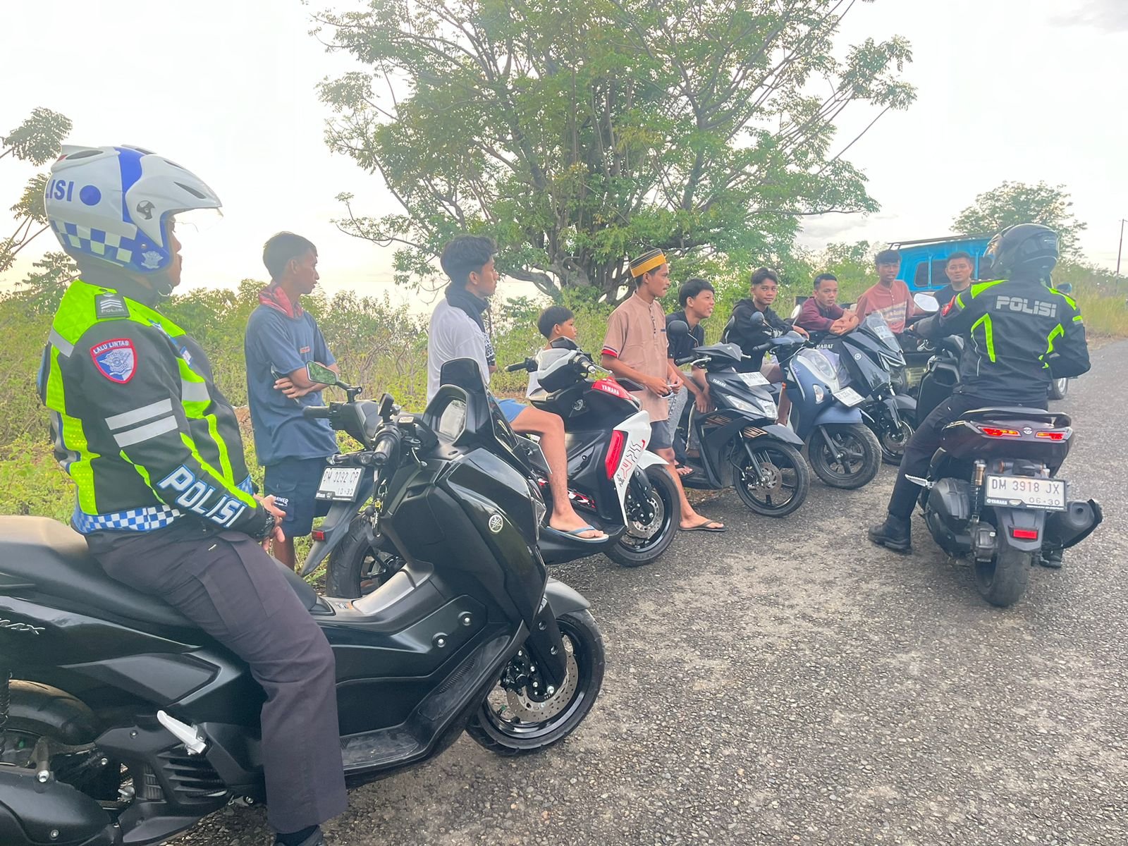 “Giat patroli pagi hari ini kami laksanakan untuk mengantisipasi balap liar dan penggunaan knalpot racing yang mengganggu ketertiban umum,” jelasnya.
