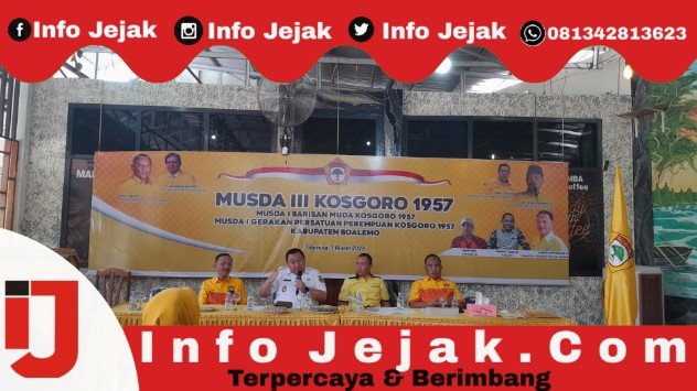 INFOJEJAK.COM-Penjabat Bupati Hendriwan turut hadir pada acara kegiatan Musyawarah Daerah (Musda) Ke-III Kesatuan Organisasi Serbaguna Gotong Royong (KOSGORO) 1957 Kabupaten Boalemo dan Musda Ke-I Gerakan Persatuan Perempuan Kasgoro 1957, bertempat di RM. Tindarong Tilamuta, Rabu (1/03/2022).