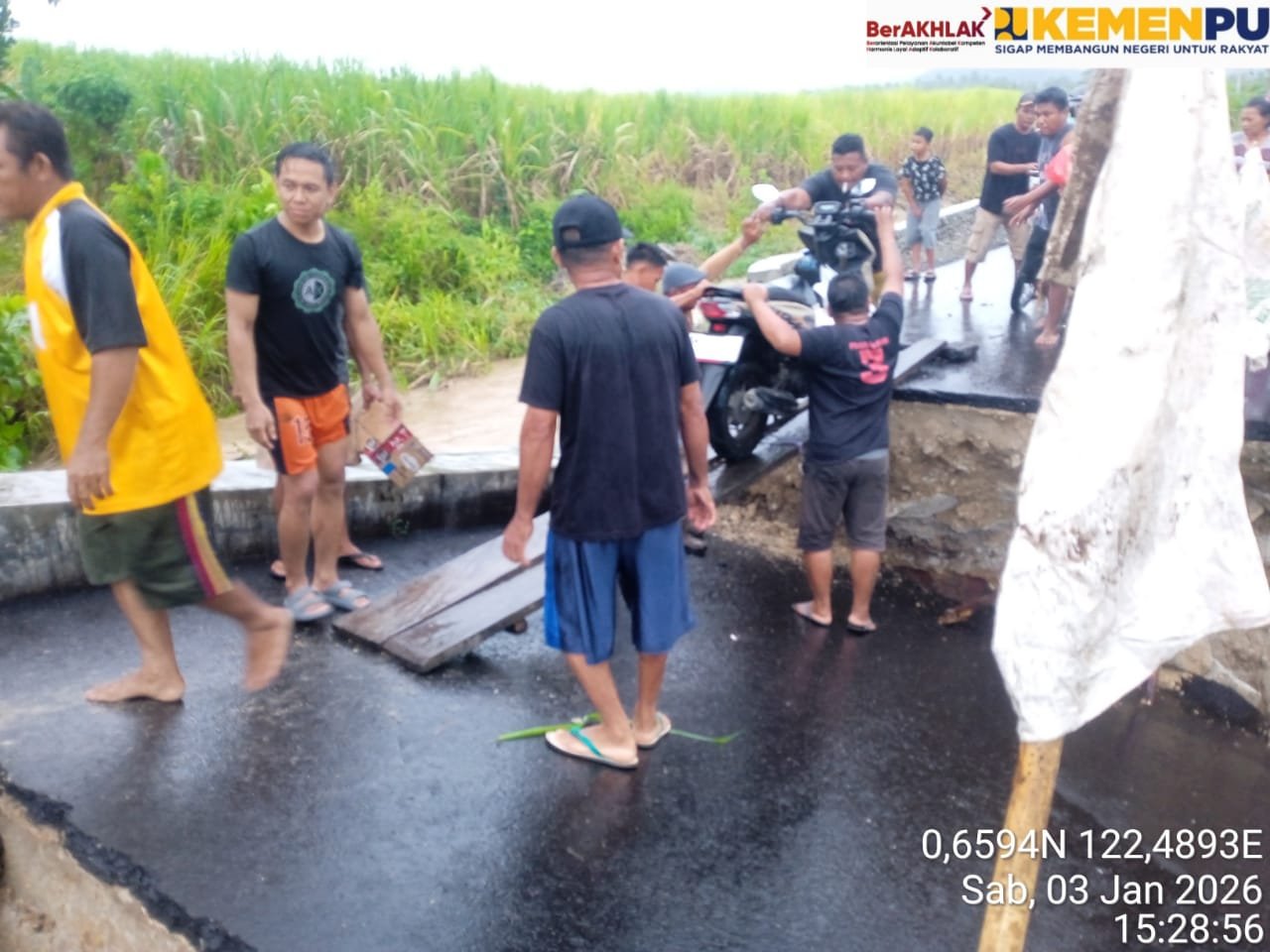 Kepala Badan Penanggulangan Bencana Daerah (BPBD) Kabupaten Boalemo, Roslina Karim, S.P., M.Si., membenarkan kejadian tersebut. Ia menyampaikan bahwa pihaknya telah melakukan pemantauan langsung di lokasi terdampak serta berkoordinasi dengan instansi terkait.