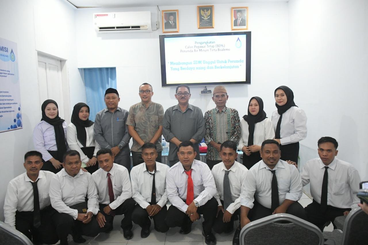 Boalemo, 17 Oktober 2025 — Dalam acara pengangkatan calon pegawai tetap Perusahaan Umum Daerah (Perumda) Air Minum Tirta Boalemo, Direktur Perumda menegaskan pentingnya membangun sumber daya manusia (SDM) yang kompeten, loyal, dan berintegritas sebagai pilar utama kemajuan perusahaan daerah tersebut.
