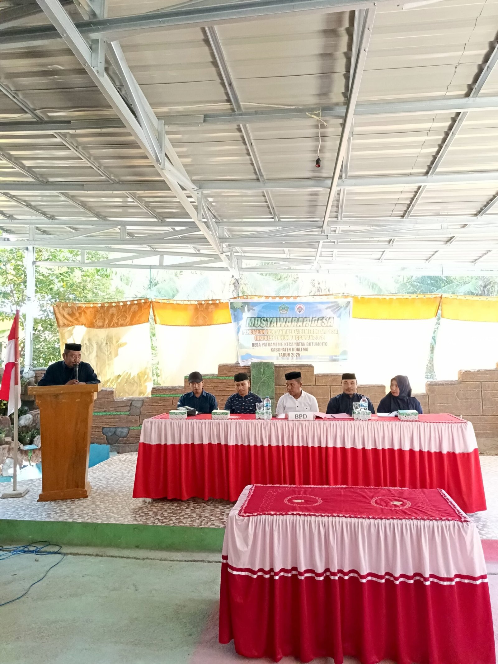 Boalemo – Badan Permusyawaratan Desa (BPD) Patoameme yang dipimpin langsung Ketua BPD, Herman Supu, melaksanakan Musyawarah Desa (Musdes) dalam rangka penetapan Rencana Kerja Pemerintah Desa (RKPDes) tahun 2026. Kegiatan tersebut berlangsung di depan aula PKBM kantor desa Patoameme, Selasa (30/8/2025), dengan melibatkan pemerintah kecamatan, pendamping desa, pemerintah desa, dan masyarakat setempat.