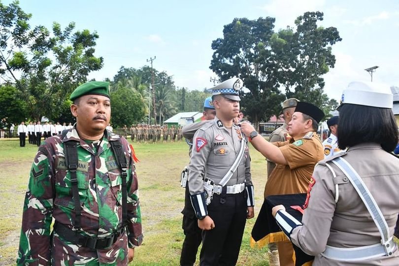 Penjabat Bupati Dr.Hendriwan,M.Si membacakan sambutan kapolri menyampaikan bahwa apel gelar pasukan merupakan bentuk pengecekan akhir kesiapan pelaksanaan operasi ketupat otanaha 2023.