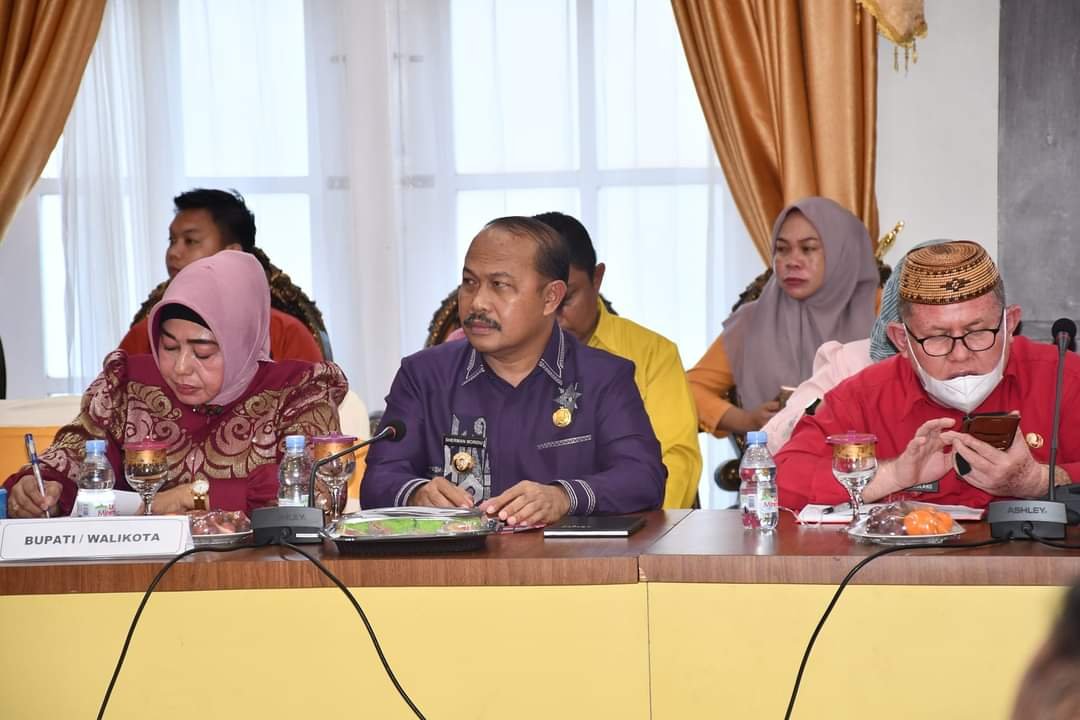 Rapat tersebut di pimpin Penjabat Gubernur Gorontalo Ir.Ismail Pakaya,M.E yang dihadiri Forkopimda Provinsi Gorontalo dan para bupati/Walikota se – Provinsi Gorontalo.