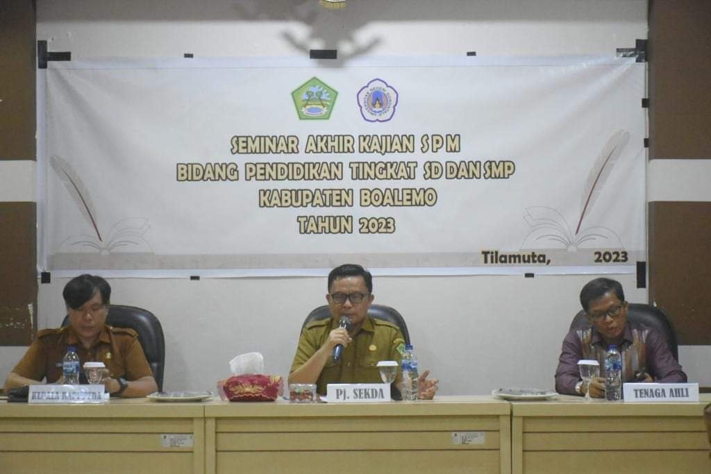 BOALEMO – Penjabat Sekretaris Daerah Supandra Nur,ST membuka seminar akhir kajian SPM bidang Pendidikan tingkat SD dan SMP Kabupaten Boalemo,bertempat diruang rapat Bappeda,selasa 29/8/2023.