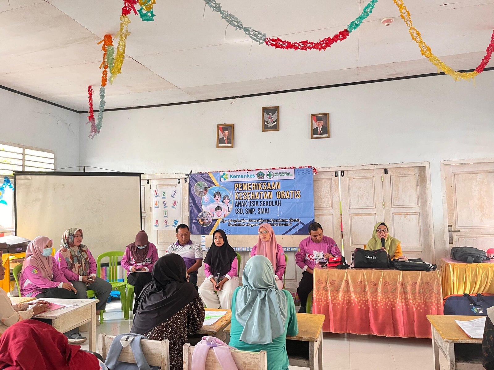 Kegiatan ini menyasar orang tua siswa sebagai peserta utama, dengan tujuan memberikan pemahaman tentang pentingnya deteksi dini terhadap risiko kesehatan anak. Narasumber dalam kegiatan ini berasal dari staf Puskesmas Paguyaman Pantai yang memaparkan materi seputar jenis-jenis pemeriksaan yang dilakukan, serta manfaatnya bagi tumbuh kembang anak.