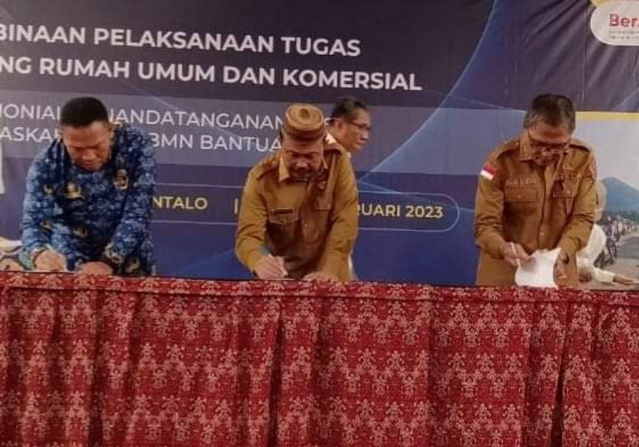BOALEMO-INFOJEJAK.COM-Sekretaris Daerah. Sherman Moridu, mewakili Penjabat Bupati Boalemo. Hendriwan, menghadiri penandatanganan BAST dan Naskah Hibah BMN berupa bantuan PSU dalam pembinaan pelaksanaan tugas bidang rumah umum dan komersial wilayah sulawesi Utara dan Gorontalo,bertempat di hotel Maqna Kota Gorontalo, senin 20/2/2023.
