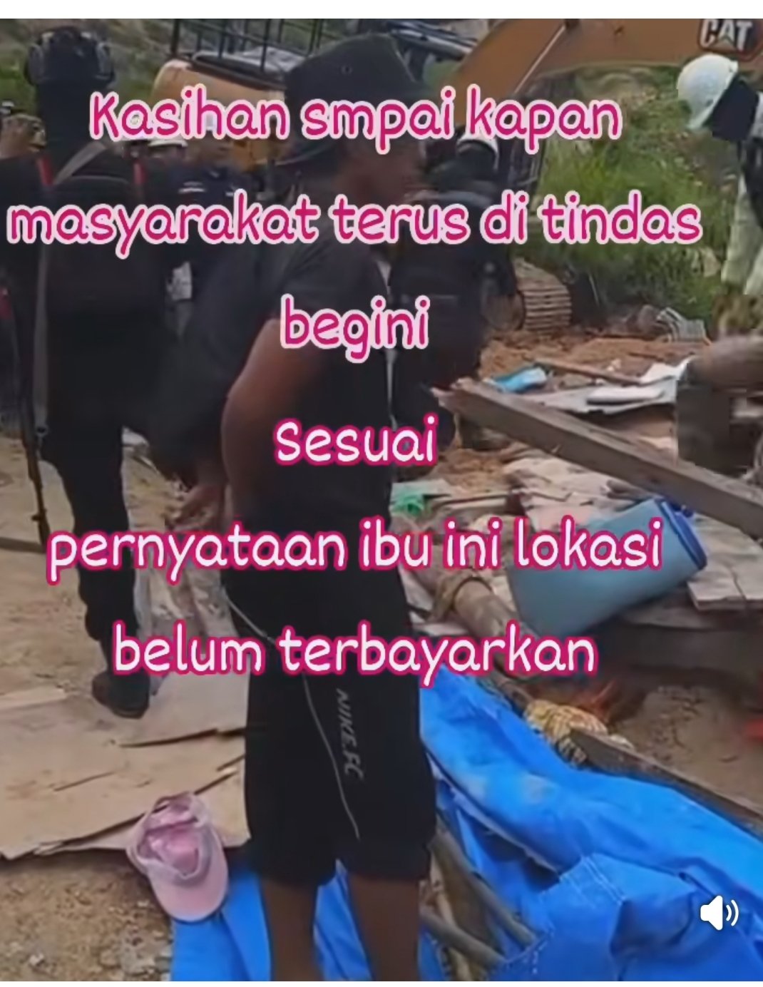 Dalam video yang viral itu, terlihat sejumlah aparat berada di lokasi saat alat berat melakukan pembongkaran area tambang yang disebut-sebut sebagai lokasi aktivitas masyarakat setempat. Narasi yang menyertai unggahan tersebut menyoroti nasib warga yang dinilai terus mengalami tekanan.